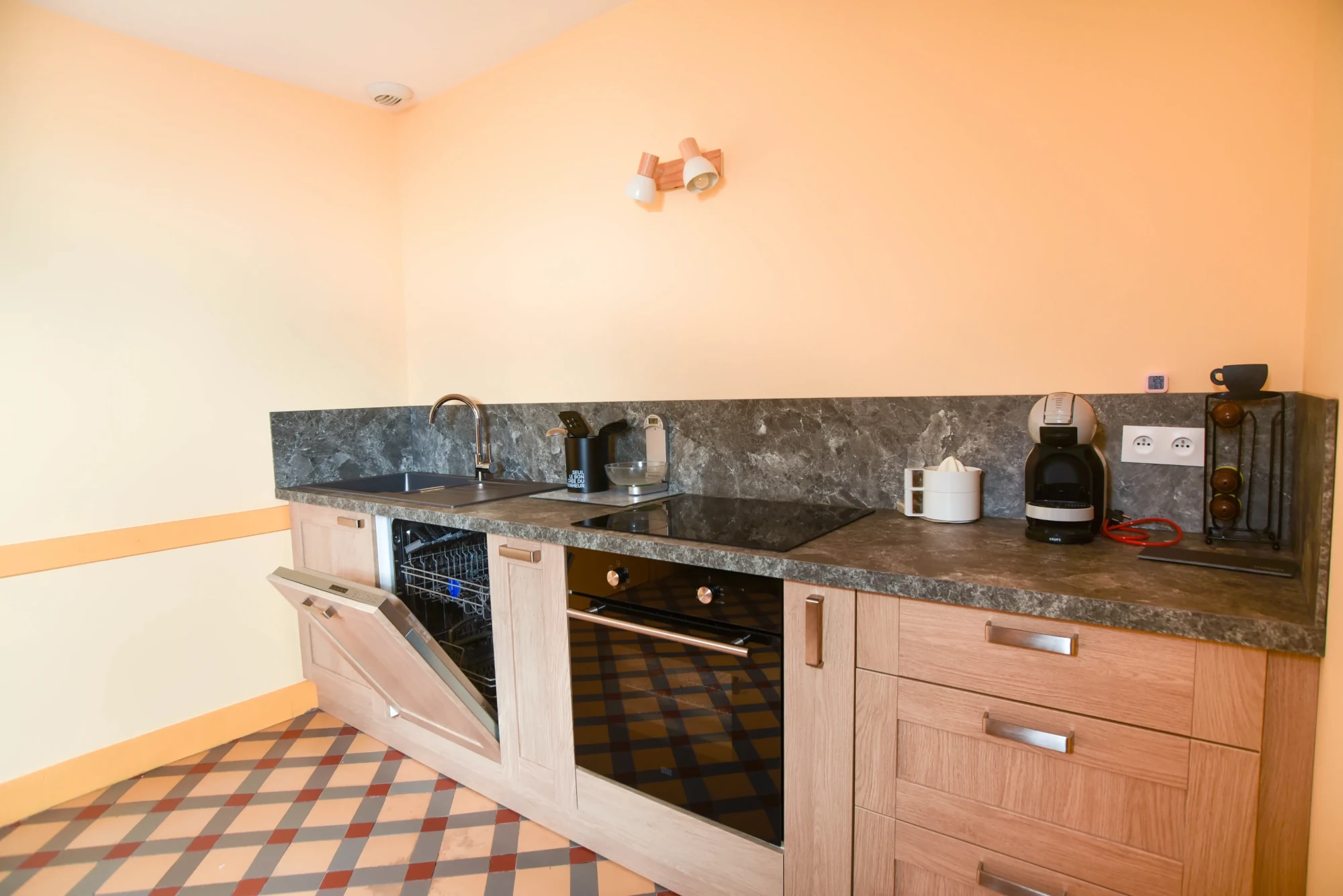 Ses 62 m² permettent d’accueillir 4 personnes, sans se monter sur les pieds. Le gîte est composé d’une cuisine entièrement aménagée et équipée, d’une salle de bains séparée des toilettes, d’une salle à manger-salon et d’un espace nuit composé de deux chambres. Le wifi y est gratuit et un minimum de deux prises électriques libres s’y trouvent dans chaque pièce.